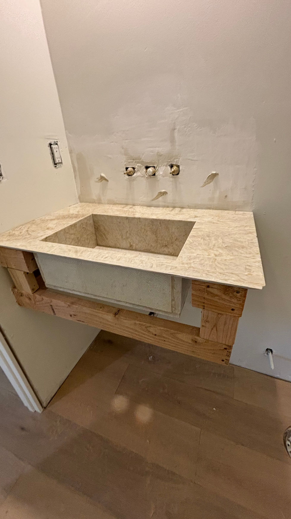 Welcome to Garcias Granite Llc, your premier destination for luxury granite surfaces. Our recent project features a stunning Floating Taj Mahal sink, elegantly wrapped all around for a touch of sophistication in your space. Discover the perfect balance of elegance and precision with Garcias Granite Llc.
